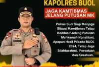 Buol, Buanatotabuan.co – Menjelang putusan Mahkamah Konstitusi (MK) terkait hasil Pilkada Buol 2024, Kapolres Buol, AKBP Handri Wira Suriyana, S.I.K., M.A.P., mengeluarkan imbauan kepada…