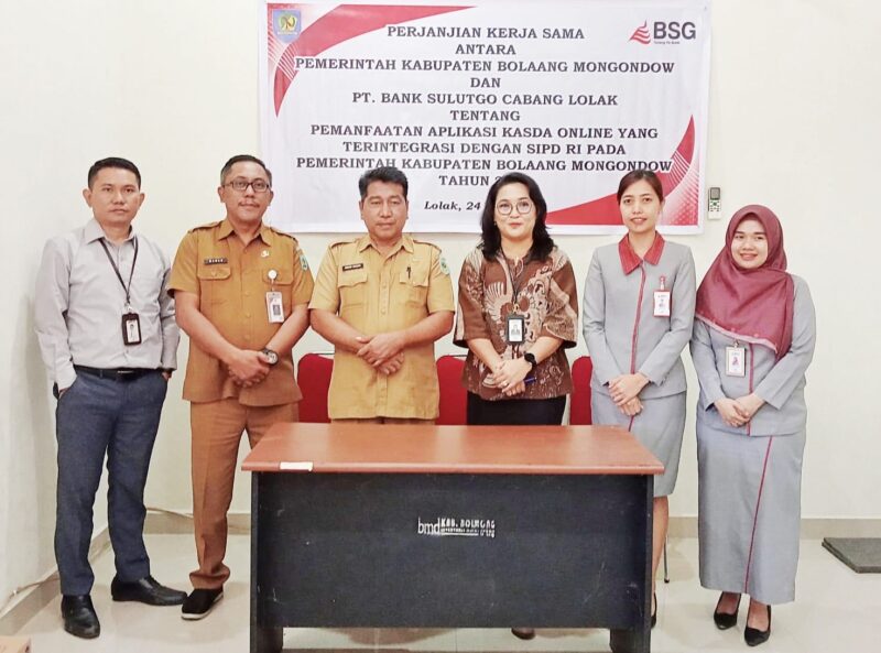 Bolmong, Buanatotabuan.co — Pemerintah Kabupaten (Pemkab) Bolaang Mongondow (Bolmong) dan Bank SulutGo (BSG) Cabang Lolak resmi menjalin perjanjian kerjasama pemanfaatan aplikasi Kasda Online, dimana aplikasi tersebut terintegrasi dengan SIPD RI.