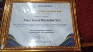Boltim, Buanatotabuan.co — Pemerintah Kabupaten Bolaang Mongondow Timur (Boltim) kembali menorehkan prestasi di tingkat nasional dengan menerima penghargaan dari Badan Kependudukan dan Keluarga Berencana Nasional (BKKBN) atas keberhasilan dalam penyusunan Dokumen Peta Jalan Pembangunan Kependudukan (PJPK) berkualitas tingkat kabupaten/kota tahun 2025, Rabu (15/4/2026).