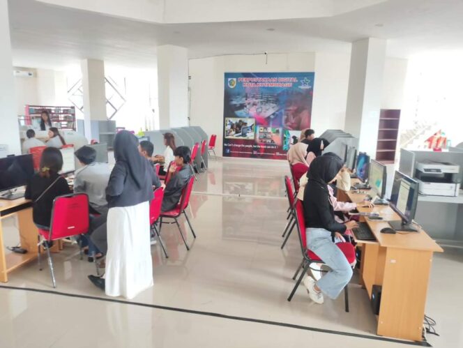 Kotamobagu, Buanatotabuan.co – Gedung Perpustakaan Daerah Kotamobagu semakin ramai dikunjungi oleh para pelajar, khususnya mahasiswa. Sejak Selasa, 8 Oktober 2024, ruang perpustakaan digital penuh dengan mahasiswa yang antusias mengerjakan tugas-tugas kuliah mereka.