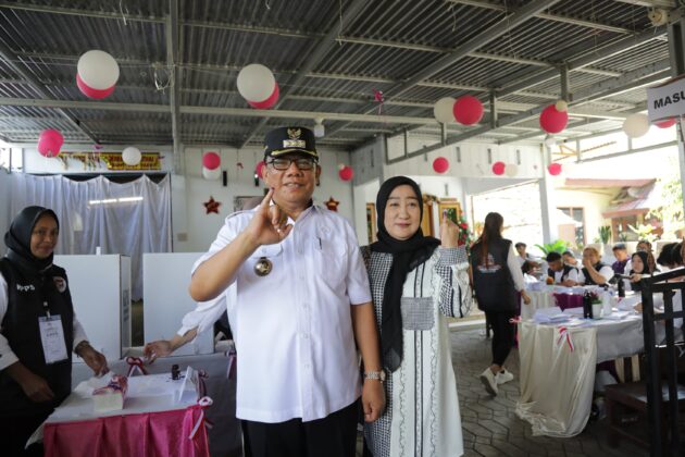 Kotamobagu, Buanatotabuan.co – Penjabat (Pj) Wali Kota Kotamobagu, Abdullah Mokoginta., S.H., M.Si bersama Ketua Tim Penggerak PKK Kota Kotamobagu, Ny. Suzanna Mokoginta Mooduto., S.H., Berikan Hak Pilih Pada Pemilukada Tahun 2024 di TPS 7 Kelurahan Kotobangon, Kelurahan Kotobangon, Kecamatan Kotamobagu Timur, Rabu, 27 November 2024.
