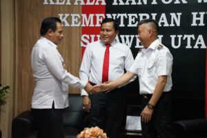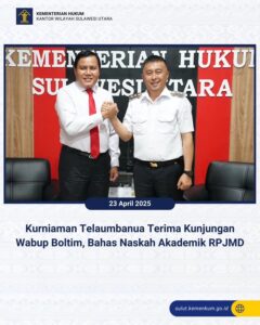 BuanaTotabuan.co, Boltim – Kepala Kantor Wilayah Kementerian Hukum Sulawesi Utara, Kurniaman Telaumbanua, menerima kunjungan Wakil Bupati Bolaang Mongondow Timur (Boltim), Argo Vinsensius Sumaiku, pada Rabu (23/4).